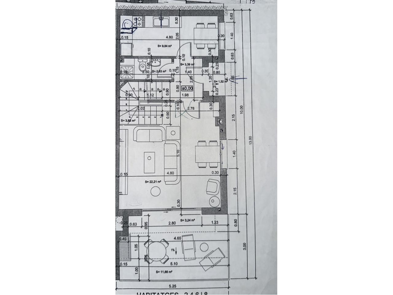 · Planta superior: dues habitacions dobles, una amb sortida a balcó i vistes al mar i una altra amb accés al jardí privat posterior (75 m2). Disposa a més d'un ampli distribuïdor i un bany complet amb plat de dutxa.